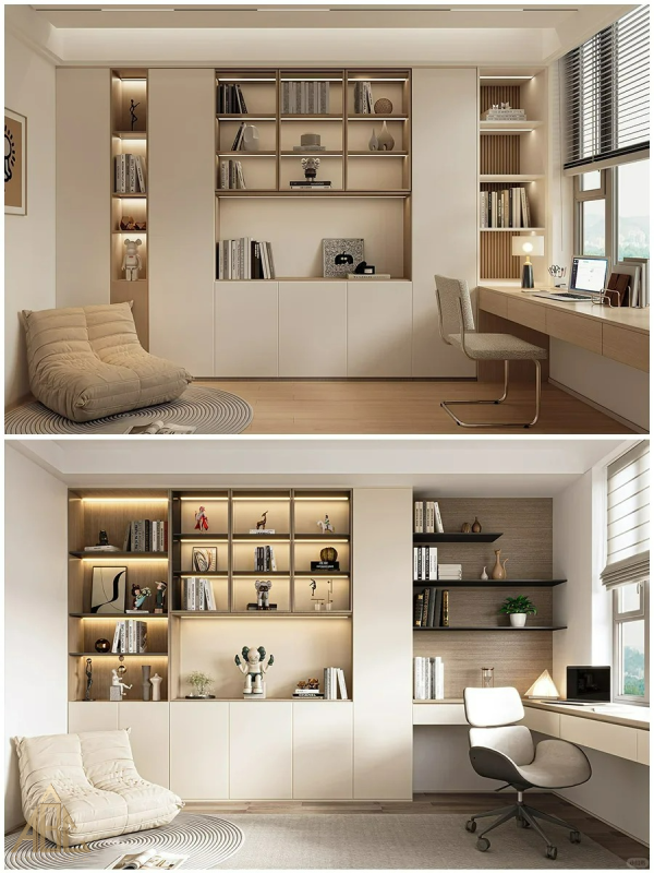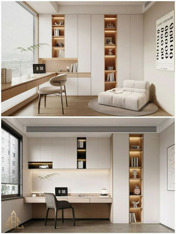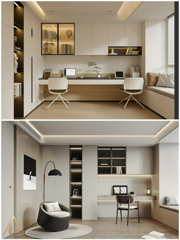 Trang trí: Treo tranh, ảnh, hoặc các tác phẩm nghệ thuật, sử dụng kệ sách hoặc kệ trang trí để tạo không gian nghệ thuật.