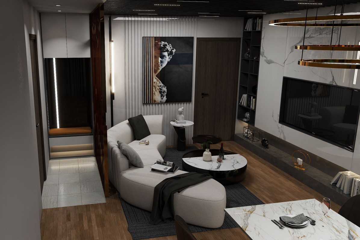 Dự án được thiết kế theo tinh thần hiện đại tối giản, lấy đường nét gọn gàng và tỷ lệ không gian làm trọng tâm.